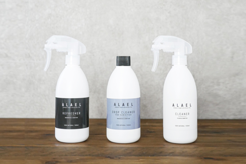 天然ミネラルが一定期間留まるため消費抗菌効果も持続するという特徴を持つ「ALAEL」は、空気の汚れを洗って空間をきれいにし、「いつも笑って人生を楽しめれば」というコンセプトのもと、「Always Laugh And Enjoy Life」の頭文字が商品名となっています。