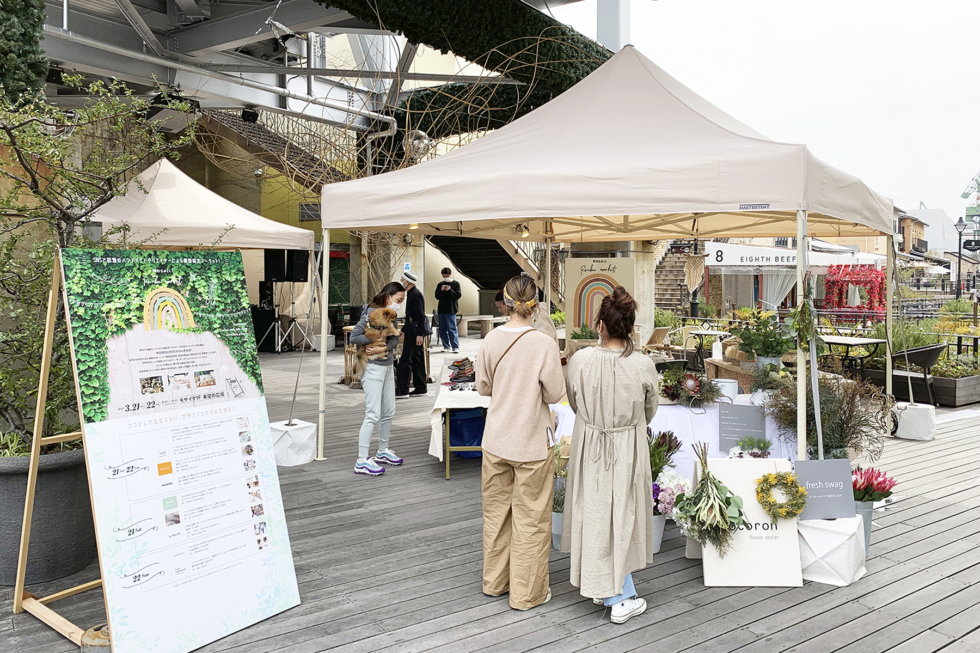 神戸ハーバーランドにある商業施設umie MOSAICにて「MOSAIC Rainbow Market」を企画運営しました。施設からの依頼は普段あまり使われていないスペースに人が流れてくるように、何かイベントをして欲しいというお題のみ。