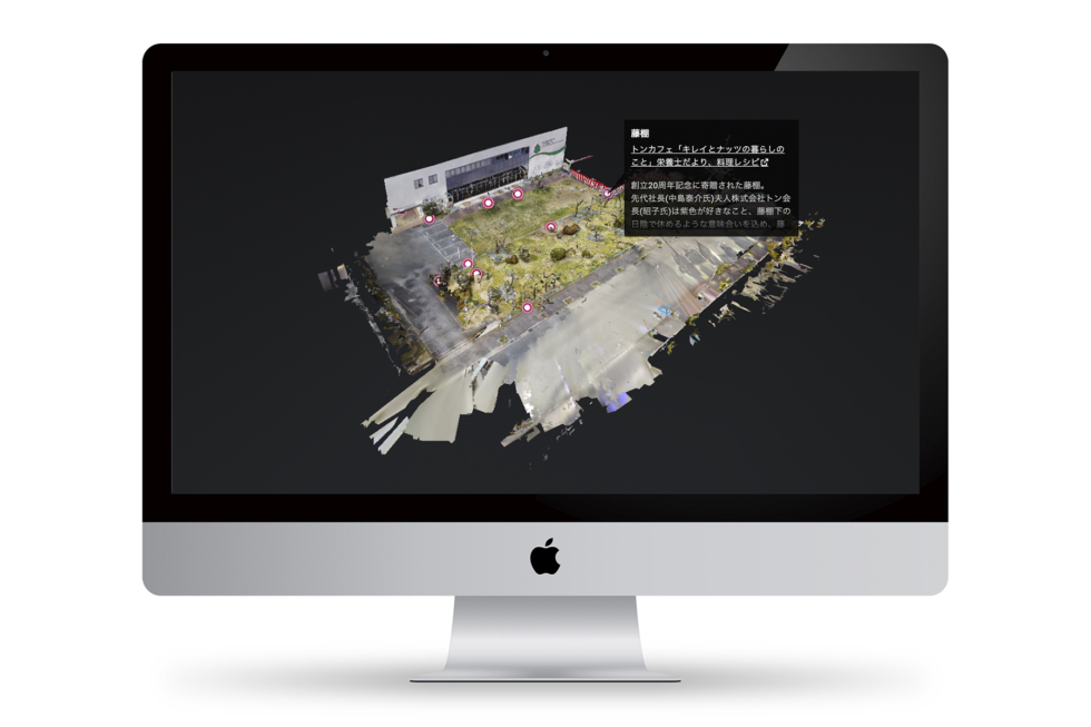 東洋ナッツ食品の本社で毎年3月に行われるアーモンドフェスティバル。2日間で3万人も訪れるこのイベントは、桜のような花を咲かせるアーモンドの花のお花見が有名です。ただ新型コロナウイルスが蔓延した昨年はイベントを中止せざるを得なくなり、2021年も同様の状況でした。そこでクライアントである東洋ナッツ食品様は、例年楽しみにしてくれているお客様の為に、Web上でお花見の雰囲気を楽しめるAlmond Festival Onlineの開催を決断されました。そのご要望を叶える為に弊社が提案したのがVRプラットフォーム「MatterPort」。パソコンやスマホの画面上でVRセットを装着せずとも立体的な映像を体感出来る同サービスで、例年会場となる同社の広い庭を撮影しWeb上にイベント会場を再現しました。