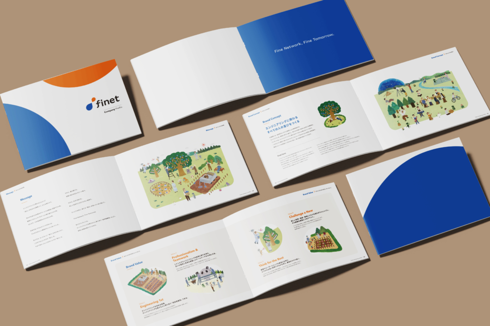 株式会社フィネット(旧社名:アイネット)様は、倉敷市に拠点を置くIT企業。医療・製造・教育業界など、幅広い分野でのソフトウェア開発を手掛けています。この度、創業50周年を迎えるにあたり、これからの会社のありたい姿をメッセージ化し、社員のマインドセットを引き上げたい、という山本社長の想いのもと、ブランドコンセプト(経営理念)策定、企業ロゴ開発、各種クリエイティブ制作まで、幅広いブランド構築のお手伝いをさせて頂きました。