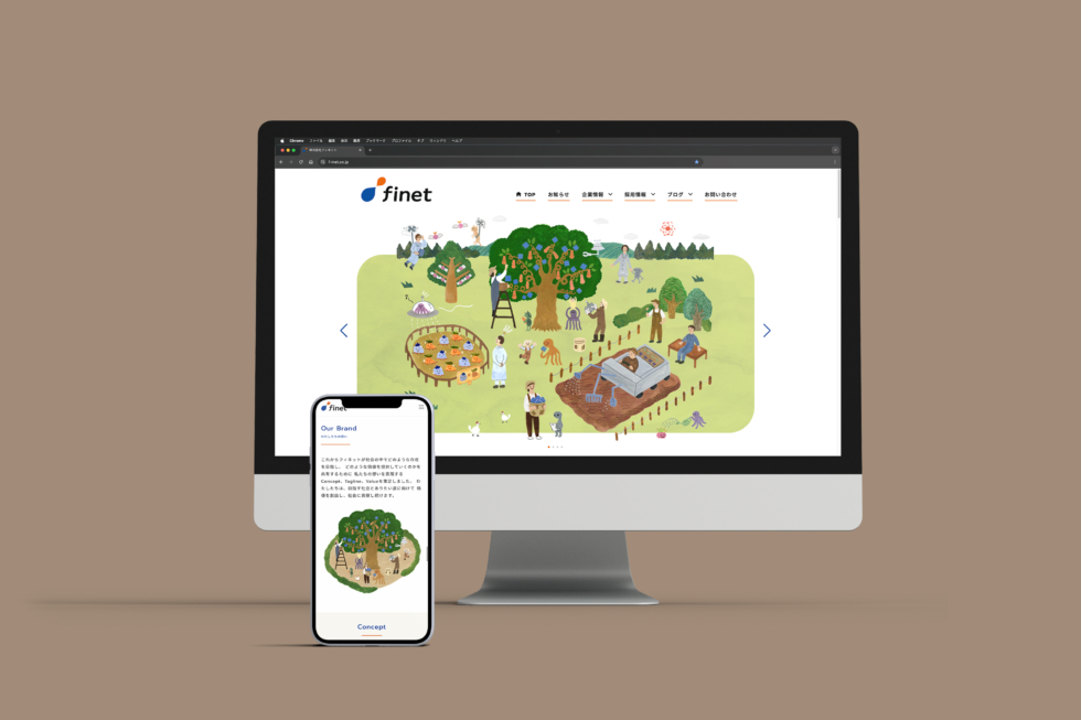プロジェクト進行中には、旧社名「inet」の頭に「f(future /fine /fit)」を加えた「finet」への社名変更も決定。その想いや提供価値を一貫したメッセージに乗せて、ロゴやコーポレートサイト等に展開していきました。