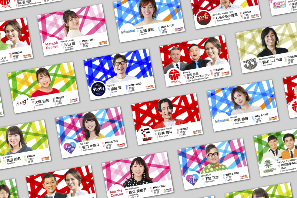 FM大阪のradiko用番組バナーをデザインさせていただきました。 これまで番組ごとに異なったバナーを制作されていましたが、春の改編により自社制作番組に統一感を出し「FM大阪らしさ」を出すことに。 2020年にブランドロゴと合わせて制作したキービジュアルを各番組カラーで展開し、”音楽と笑いのラジオ”の明るさや楽しさが伝わるようなデザインを制作させて頂きました。 ☞ FM大阪 radiko:https://radiko.jp/#!/live/FMO