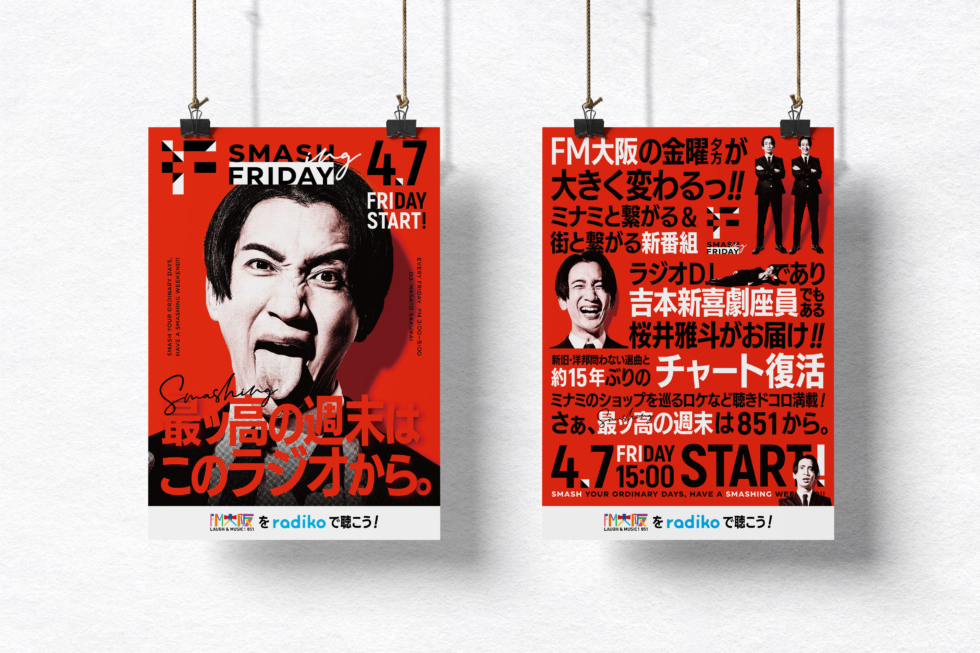 2023年4月から放送開始のFM大阪の新番組「SMASH(ING) FRIDAY」のビジュアルを担当いたしました。