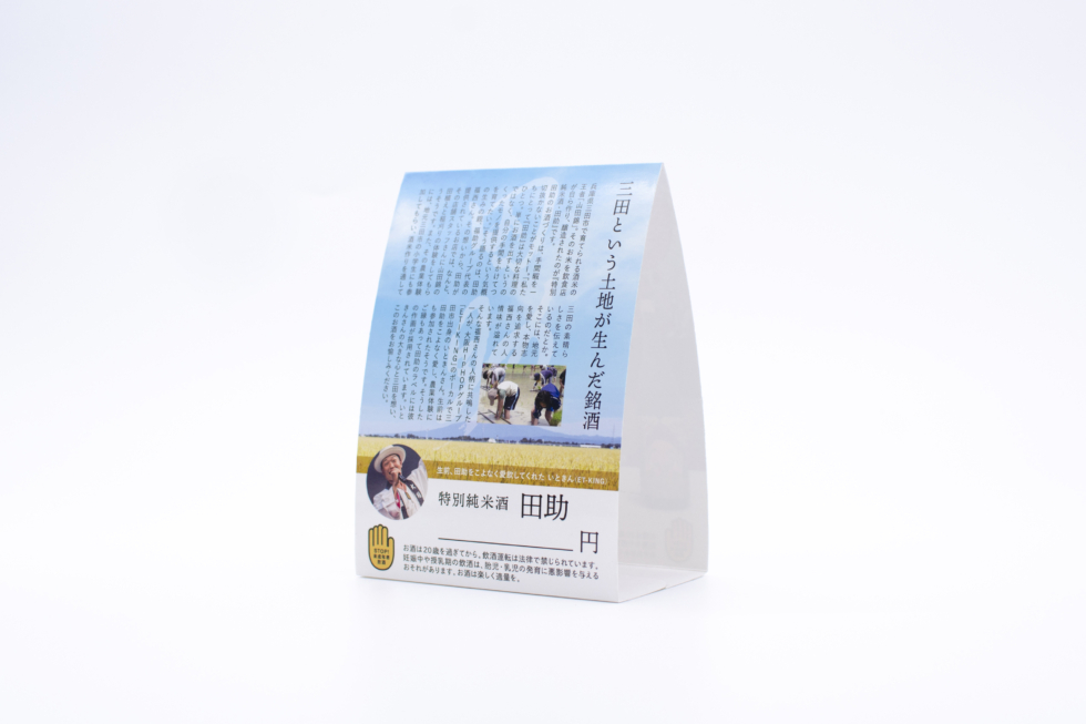 兵庫県三田が生んだ銘酒「特別純米酒 田助(でんすけ)」のラベルを制作させていただきました。アートワークはET-KINGのリーダー・いときんさん。三田市出身で、一番好きな飲み物がこの「田助」と語っていたほど、いときんさんがこよなく愛したお酒です。 当初、三田市の飲食店グループでのみ販売されていましたが、現在では全国の飲食店でも取り扱いが増えているそうですので、機会があれば是非一度ご賞味ください。 http://ba-ri-ki.co.jp/report/119